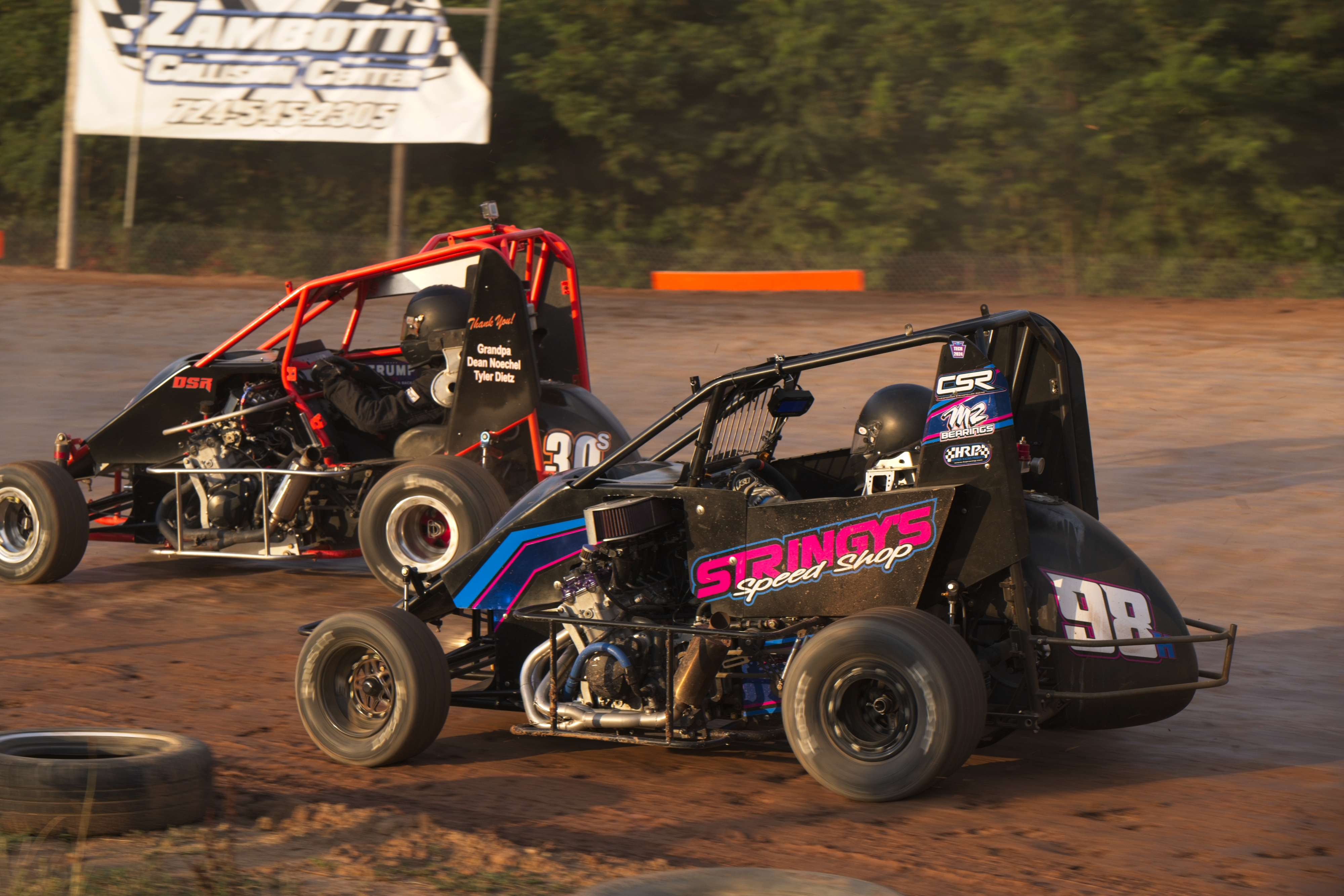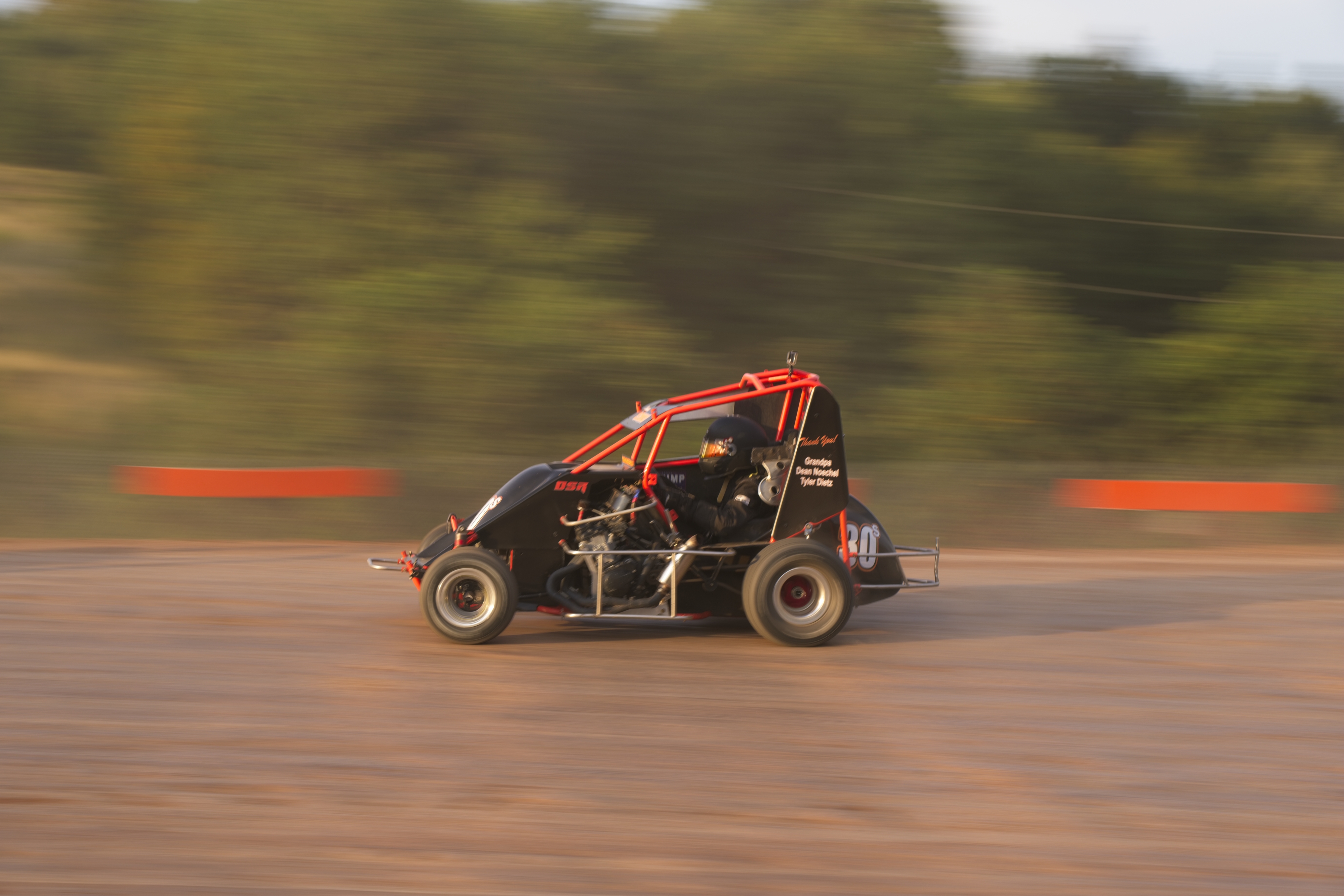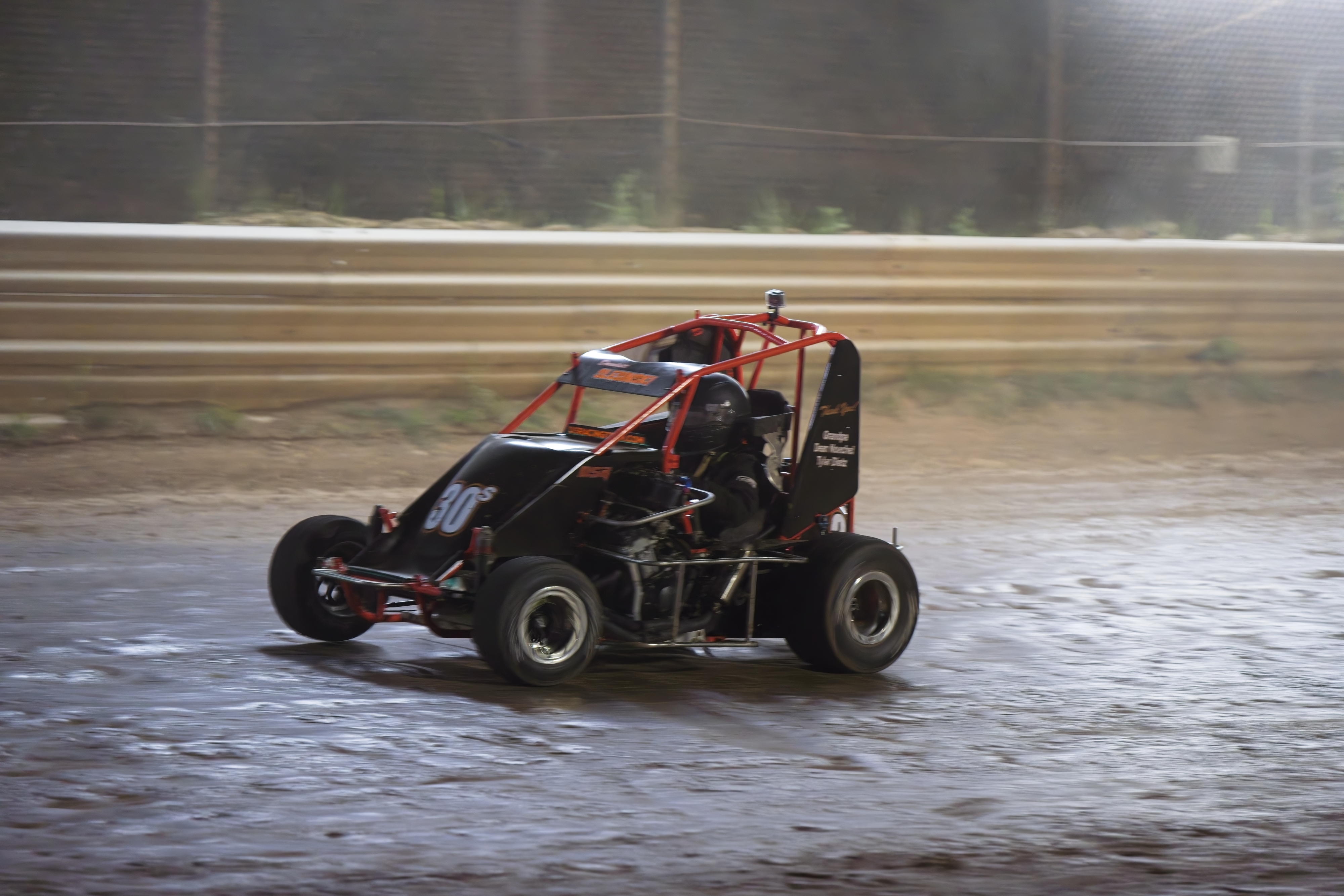 In the feature race, Dominic was up on the wheel, battling fiercely for positions. He spun out while attempting a pass coming out of turn 4 . This dropped him to the rear of the field for the restart with only five or six laps remaining.